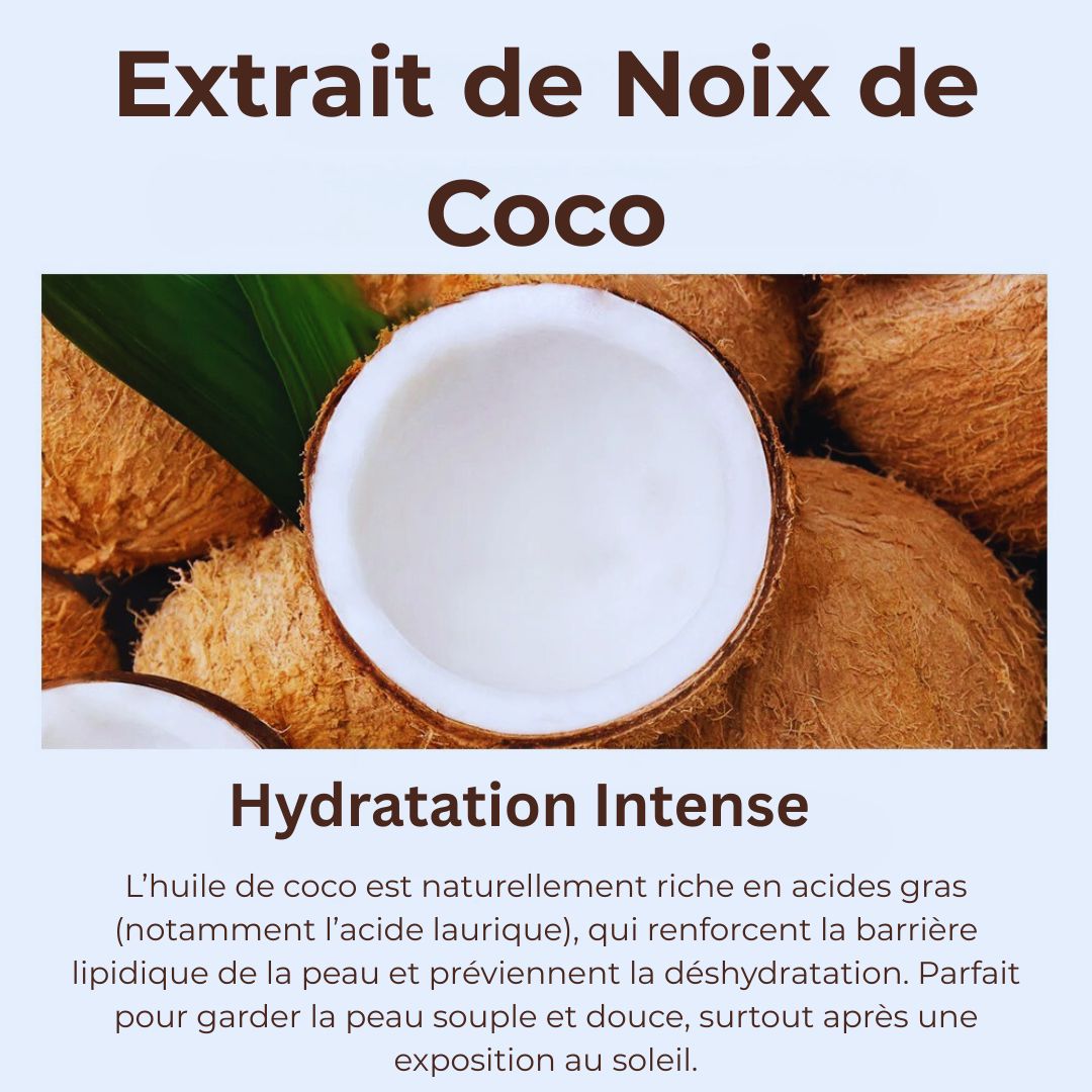 Grâce à l’huile de noix de coco et aux huiles végétales riches en vitamines, votre peau reste douce, souple et intensément hydratée, même après une journée au soleil ou à la plage.
