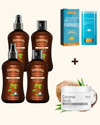 2 Huile Auto-Bronzante + 1 Gommage corporel exfoliant au noix de coco + 1 Bâton de crème solaire SPF 50+ OFFERTS PACK PREMIUM Spéciales Soldes d'été 🎁